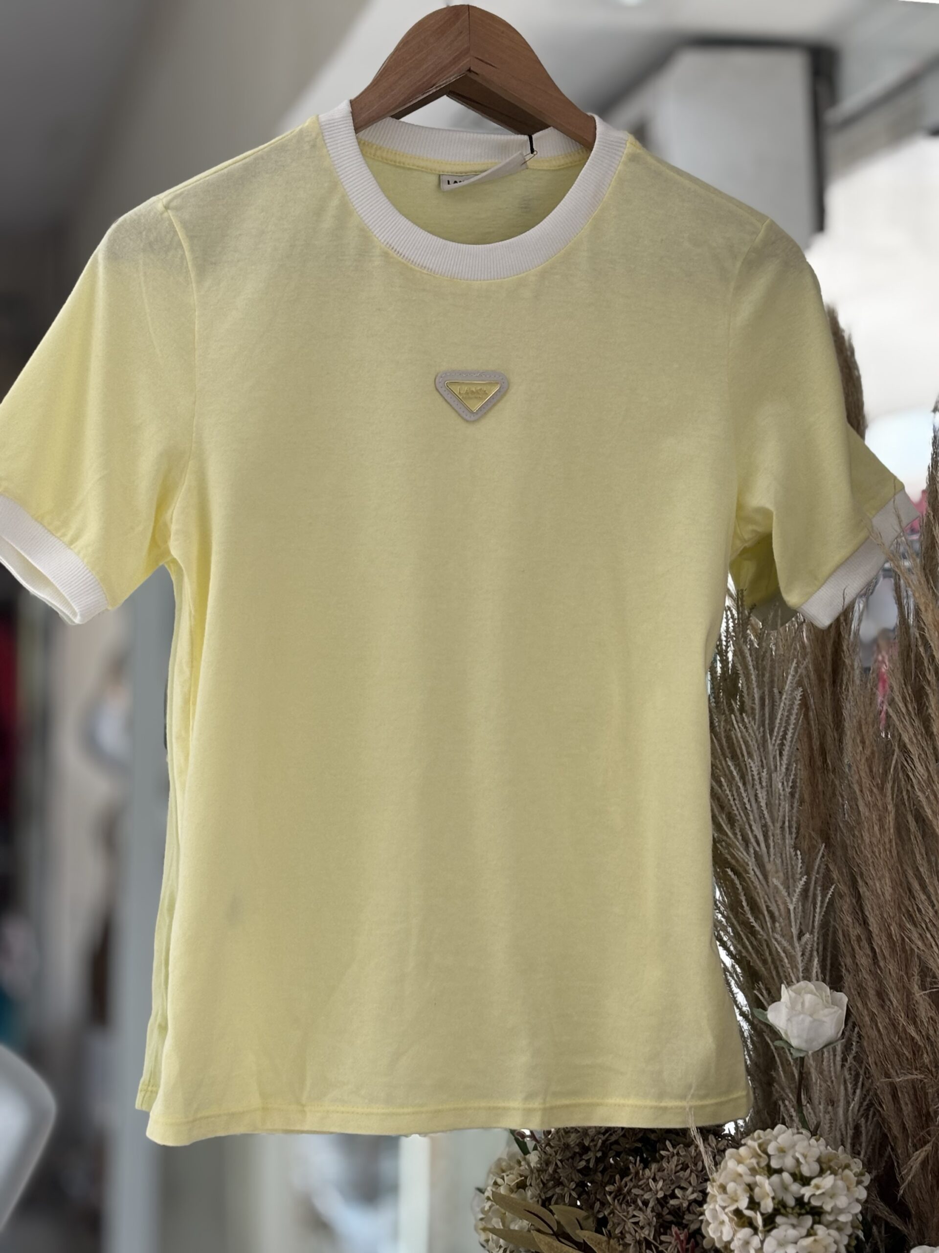T-shirt Lança Perfume Amarela com Detalhes Brancos 💛