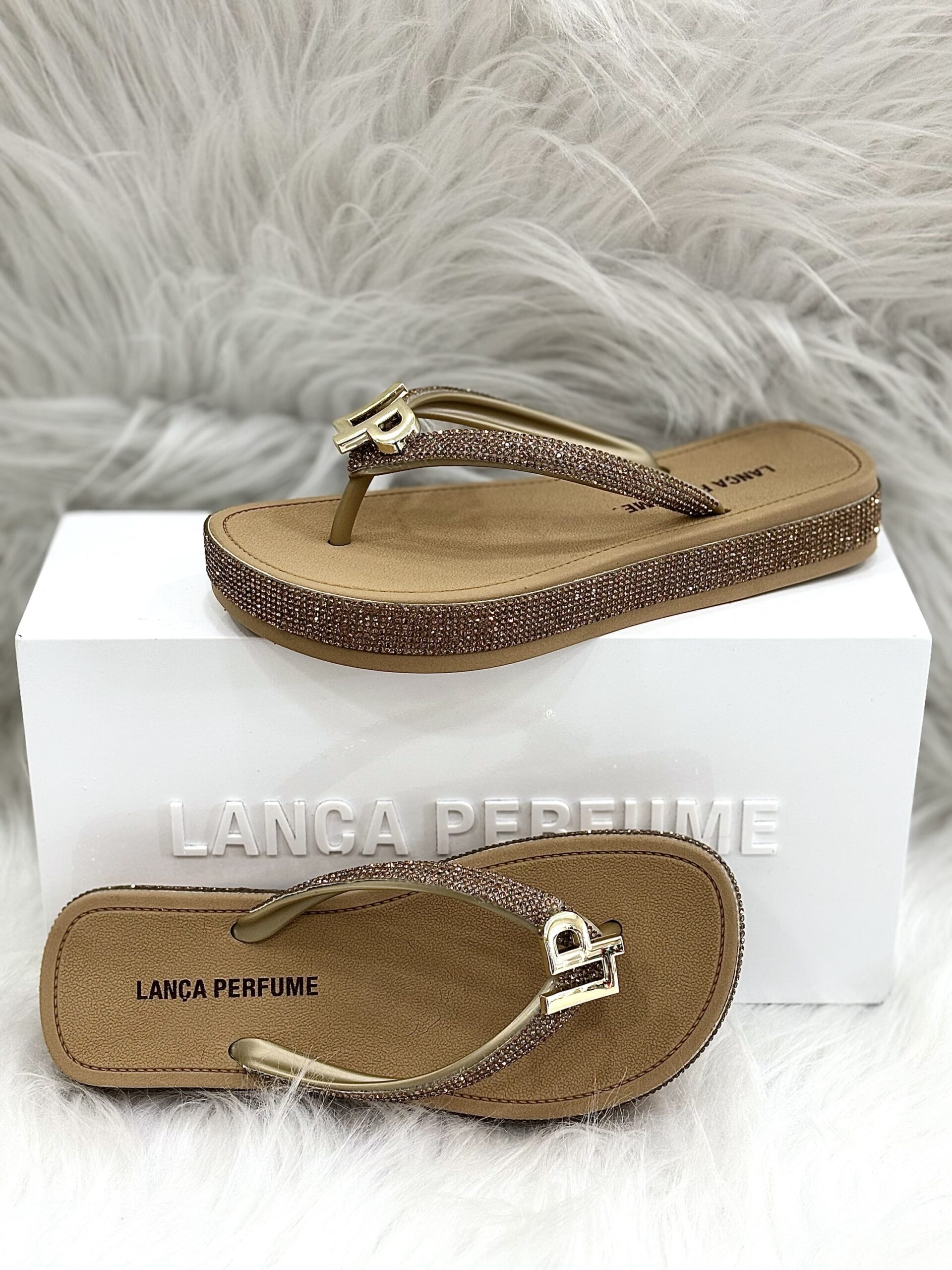 Este chinelo da Lança Perfume é a fusão perfeita entre conforto casual e o glamour característico da marca, ideal para quem não abre mão do brilho mesmo nos momentos de lazer.
